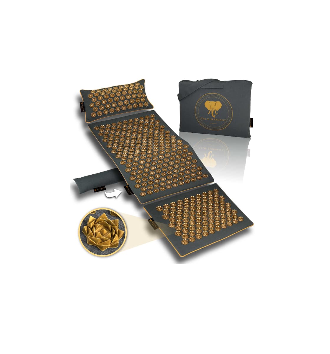 Jedes unserer Produkte ist sorgfältig durchdacht und entwickelt, um dir maximalen Nutzen und Komfort zu bieten. Egal ob du eine klassische Akupressurmatte, eine innovative Massagematte oder spezielle Zusatzprodukte wie eine Knierolle suchst – bei CALM ELEPHANT findest du genau das, was zu deinem Alltag passt.